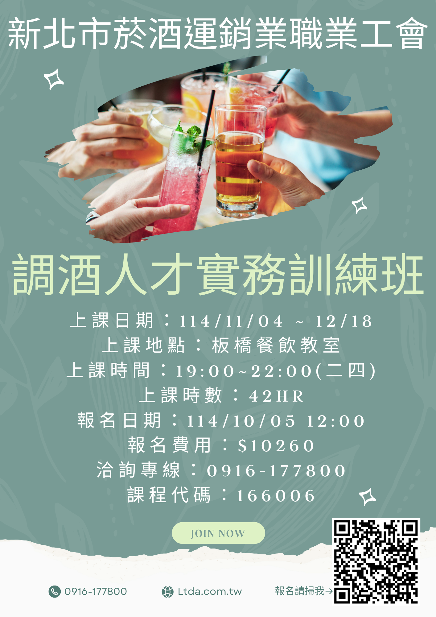 1.使用操作安全說明及設施設備介紹及器具設備介紹 2.認識酒類與用具 a.杯型介紹-短飲 長飲 b.器具介紹-量酒器 酒嘴 隔冰器 鋼杯等 |