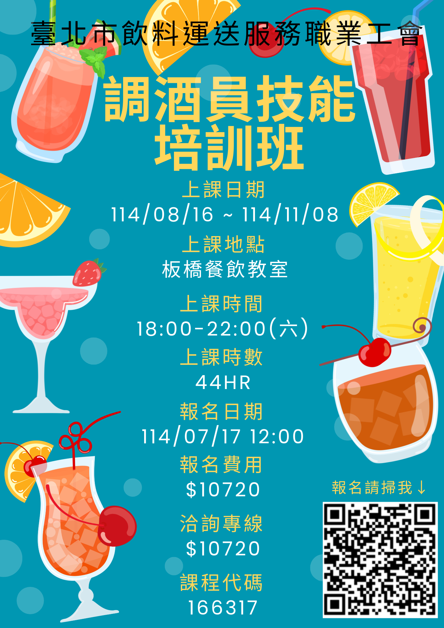 課程介紹/1.食品安全衛生說明(1小時)2.「使用操作安全說明」及「設施設備介紹及器具設備介紹」調酒師必備的工具-使用操作說明(1小時) |