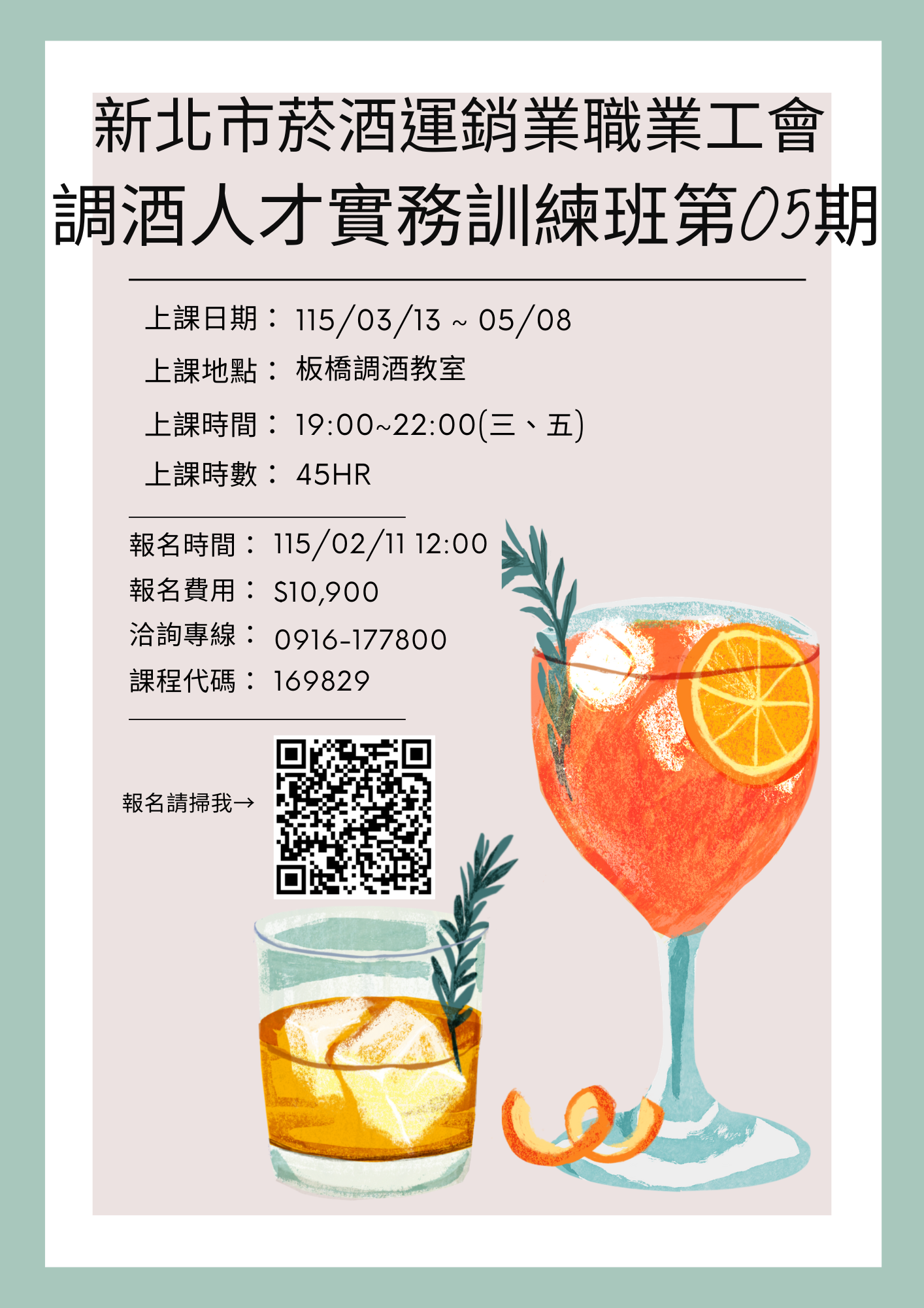 1.四大調法-攪拌法練習. 2.波式頓雪克杯動作練習. 3.認識基酒-龍舌蘭/白蘭地/威士忌 4.調酒製作:(1)瑪格麗特.(2)檸檬水滴.(3)威士忌酸酒.(4)皮斯可酸酒.(5)側車. |