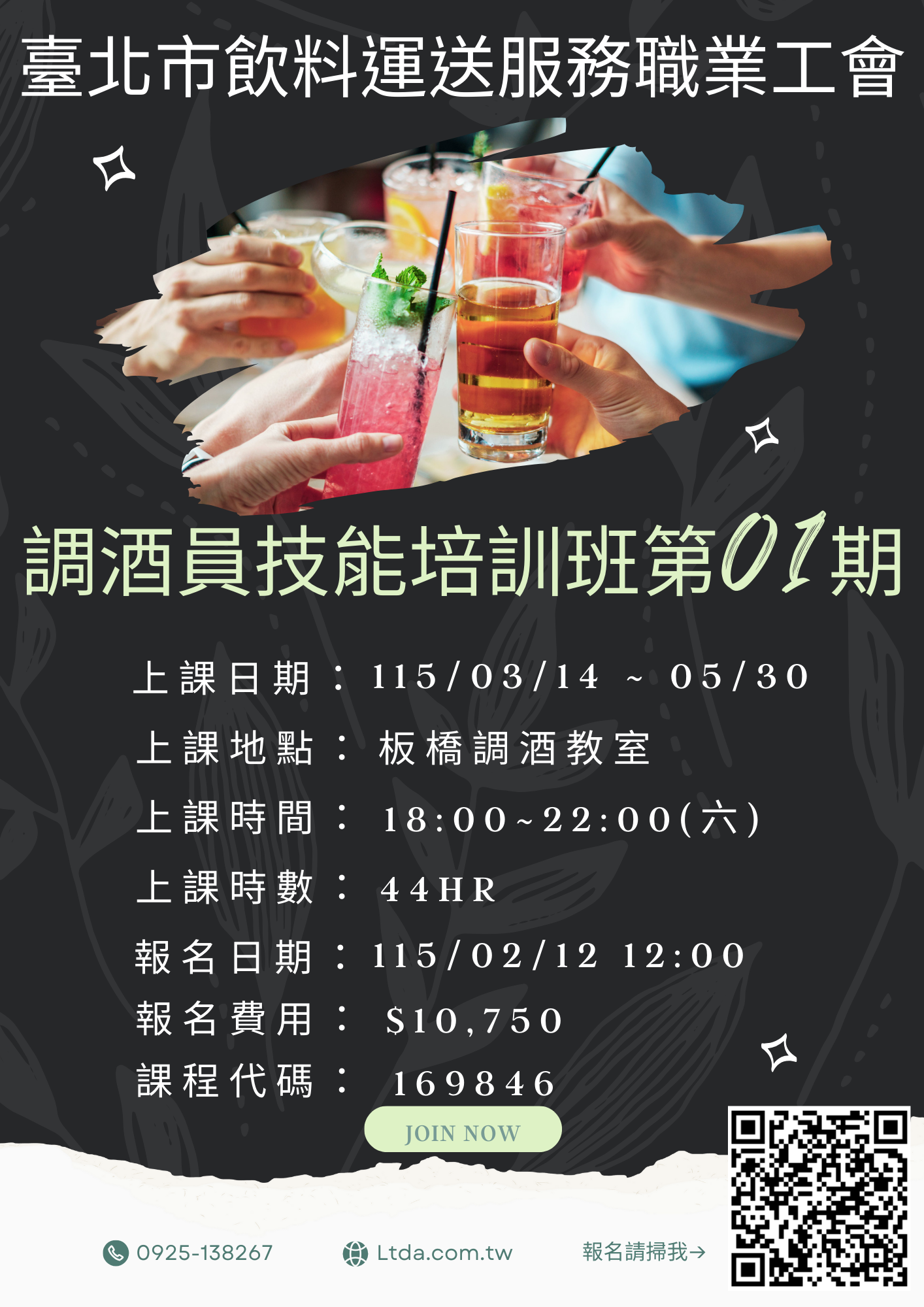 課程介紹/1.食品安全衛生說明(1小時)2.「使用操作安全說明」及「設施設備介紹及器具設備介紹」調酒師必備的工具-使用操作說明(1小時) |