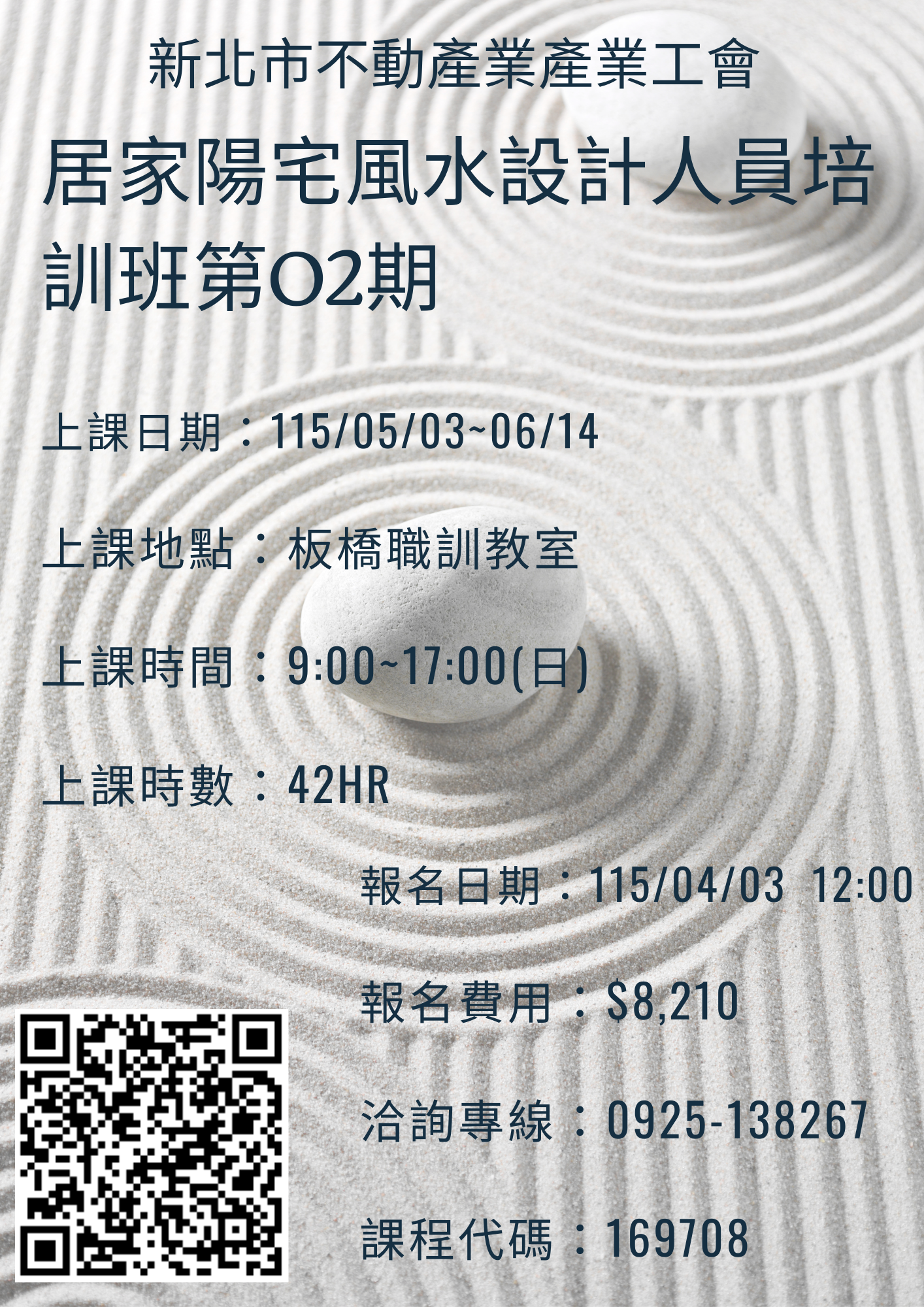 新北市不動產業產業工會-居家陽宅風水設計人員培訓班第02期