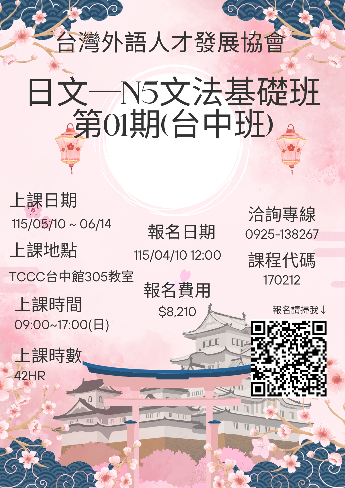 課程介紹/50 音發音介紹練習 (清音 濁音 半濁音 拗音) 平假名片假名/將N5文法,按照意思與詞性做好分類,學習者從最不擅長的部份開始學起。【意思】→【接續】→【例句】→【注意】的方式排列,凝聚重點。解說:禮貌文法句型(丁寧型).指示句文法句型(指示代名詞) 引導學員實務練習句型以及練習造句。 /將所學的字彙、升級至適合在工作場合中使用的職場用語,第一堂課開始介紹立即能夠開口說出「慣用句」。(上) |